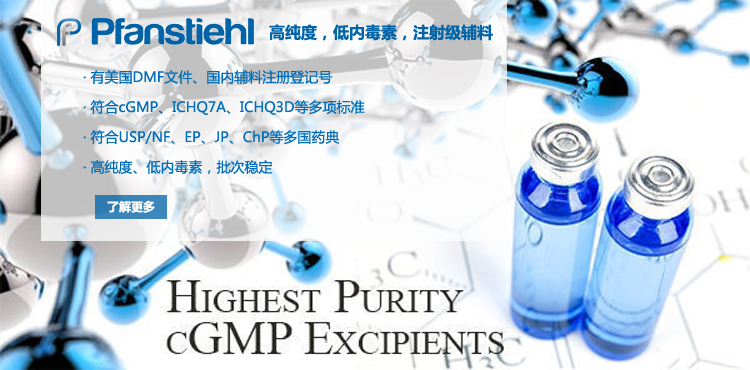 “熱烈祝賀Pfanstiehl的注射級甘氨酸Glycine(G-140)喜獲CDE登記號F20250000403, 這是Pfanstiehl產品獲得的第18個CDE登記號!”甘氨酸在醫藥輔料制劑中應用廣泛,, 可作為緩沖劑,增溶劑,穩定劑等,具有諸多優勢。Pfanstiehl秉承一貫高品質理念,為滿足全球生物制藥行業對于高品質甘氨酸的需求,隆重推出的注射級甘氨酸Glycine (G-140), 具有超高純度,超低內毒素,超低金屬殘留的特點,單獨檢測29種金屬離子,并且新增DNA,RNA,DNA酶,RNA酶和脂肪酶,亞硝酸鹽等多項質量指標的檢測,符合多國藥典規定(USP, EP, BP, JPE, ChP),可用于生物治療性藥物和疫苗的生產。產品信息:· 產品名稱:Glycine, High Purity, Low Endotoxin, Low Metals, USP, EP, BP, JPE, ChP (G-140)· 中文名稱:甘氨酸· 分子式:C2H5NO2· 分子量:75.07 g / mol· CAS號:56-40-6· 產品貨號:G-140產品特點: · 超高純度,超低內毒素,超低微生物含量,超低金屬雜質殘留· 質量指標新增DNA,RNA,DNA酶,RNA酶,脂肪酶和亞硝酸鹽檢測· 符合多國藥典:USP, EP, BP, JPE, ChP· 符合ICH Q3D標準· 符合GMP標準· 已獲DMF和CDE登記號 產品應用:· 緩沖劑· 穩定劑· 增溶劑如果您對Pfanstiehl注射級別Glycine G-140感興趣,歡迎聯系Pfanstiehl 中國區代理商北京西美杰科技有限公司獲得如下詳細的產品概況說明文件和測試樣品。Pfanstiehl Inc.最新產品系列如下,歡迎聯系北京西美杰科技有限公司獲取100g裝免費樣品。北京西美杰科技有限公司為Pfanstiehl中國代理,為客戶提供完善的技術支持與售后服務。歡迎撥打西美杰客服電話400-050-4006或者登陸網站www_xmjsci_com.cipgiv.pro了解更多信息。 更多>西美杰介紹
